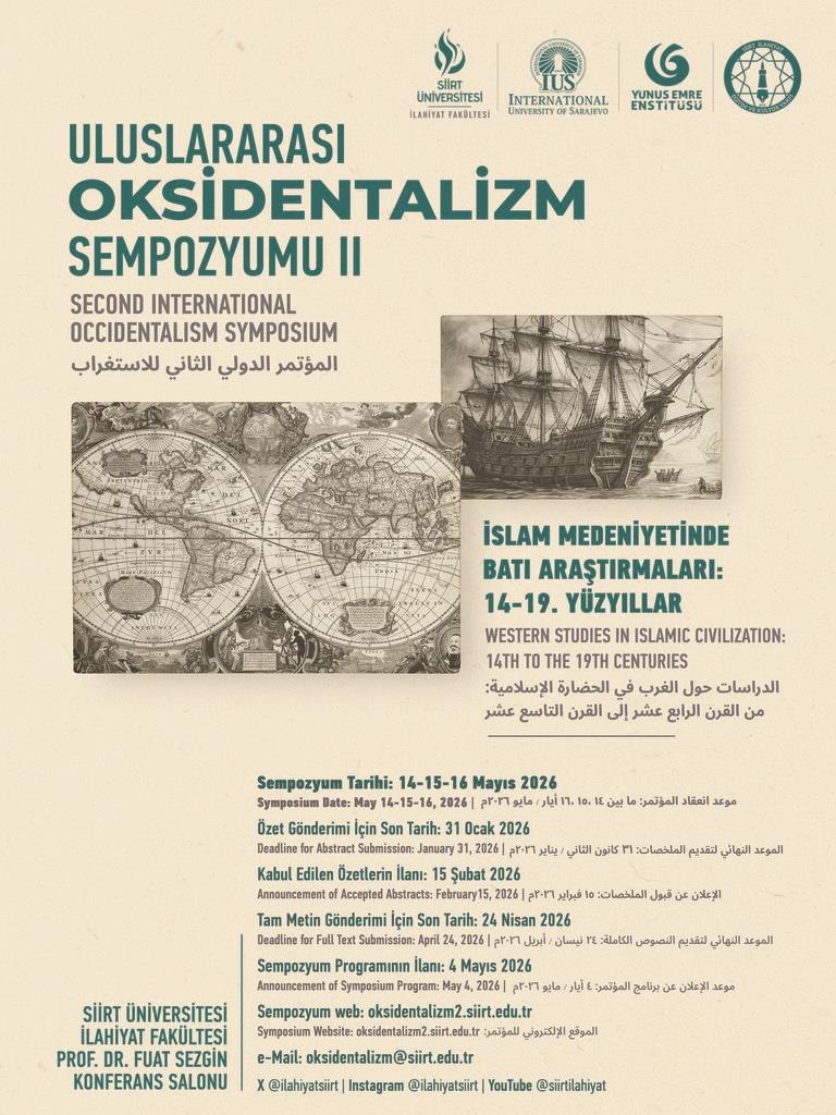 Fakültemizin önemli bir projesi olan ve bir seri olarak yapılması planlanan sempozyum dizisinin nihayet ikincisini gerçekleştireceğiz. Bu çabayla Oksidentalizm alanında önemli bir birikim oluşturabilecek ve alan yazınına yönelik literatür tespiti yapabilecek derli toplu bir çerçeve ortaya koyabileceğiz. Düzenlenen ilk sempozyum ve yapılacak ikinci sempozyum çerçevesinde Oksidentalizm hakkında sistematik bir bilginin ve bakış açısının oluşmasına hazırlık yapmış ve katkı sunmuş olacağız. Bu bağlamda, Uluslararası Saraybosna Üniversitesi ile iş birliği içerisinde ve Siirt İlahiyat Eğitim ve Kültür Vakfı'nın da katkılarıyla düzenlenecek yeni sempozyumumuzun adı “Uluslararası Oksidentalizm Sempozyumu-II (İslam Medeniyetinde Batı Araştırmaları: 14-19. Yüzyıllar)”dır.